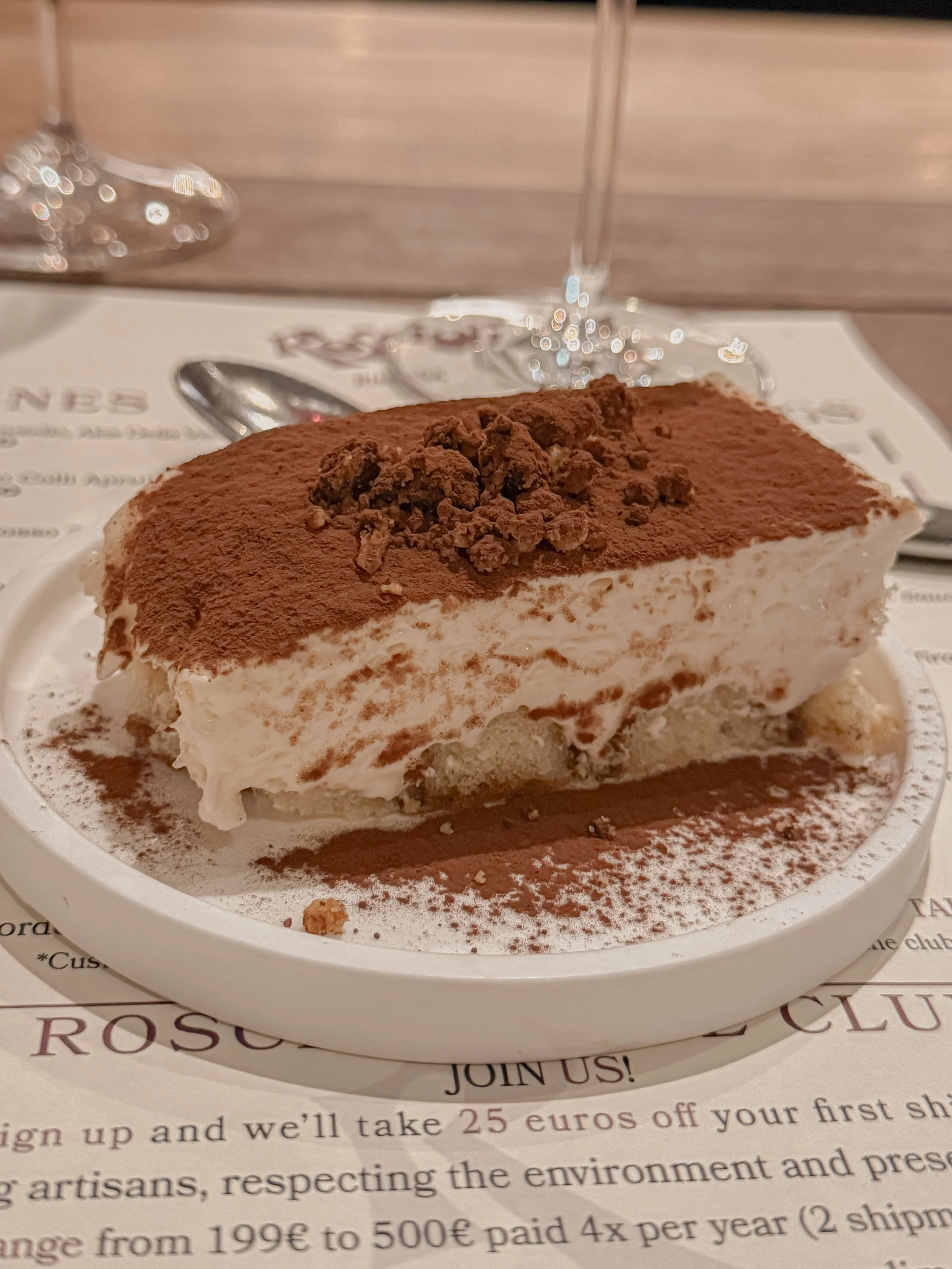 A highlight of the afternoon was the short cooking demonstration. Watching Ronnie expertly prepare Cacio e Pepe, a classic Roman pasta dish was a masterclass in simplicity and technique. From the balance of Pecorino Romano to the perfect emulsification of the sauce, it was a lesson in how to turn humble ingredients into a masterpiece. When the plate of Cacio e Pepe arrived, it was everything I had hoped for—perfectly al dente pasta, a creamy, cheesy sauce, and a peppery kick. It was a quintessential Roman dish, executed flawlessly. The meal concluded with a homemade dessert: a tiramisù that was as light as a cloud yet rich in flavor. The delicate layers of mascarpone, coffee-soaked savoiardi, and a dusting of cocoa were the perfect ending to a spectacular lunch.