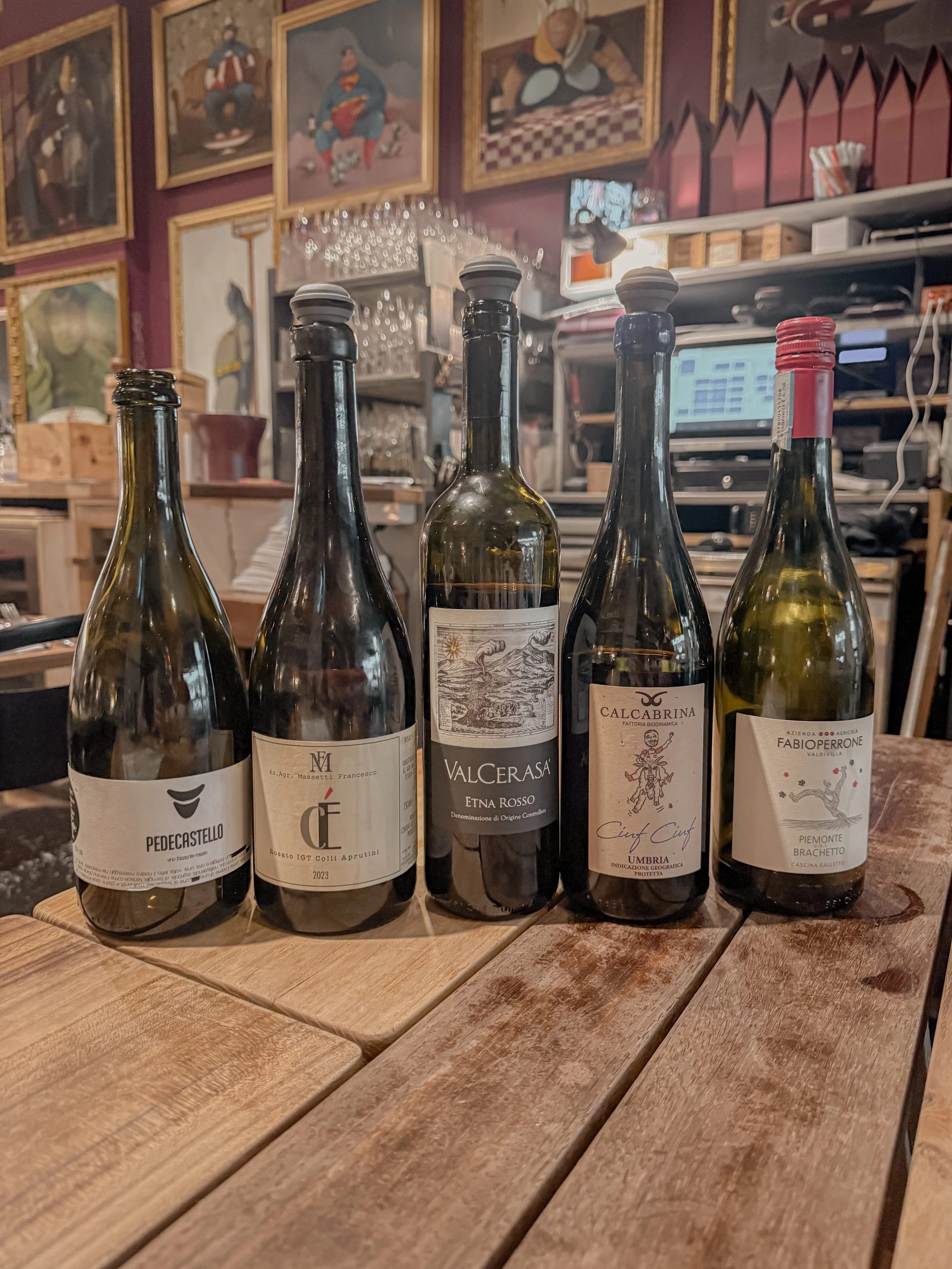 Walking into Rimessa Roscioli, you’re immediately enveloped in a warm, vibrant ambiance. The walls adorned with eclectic art pieces, a blend of rustic charm and contemporary flair, setting the stage for what promised to be a memorable experience. Our host for the day, Ronnie, a talented sommelier born and raised in Trastevere, greeted us with infectious enthusiasm and passion for his craft.