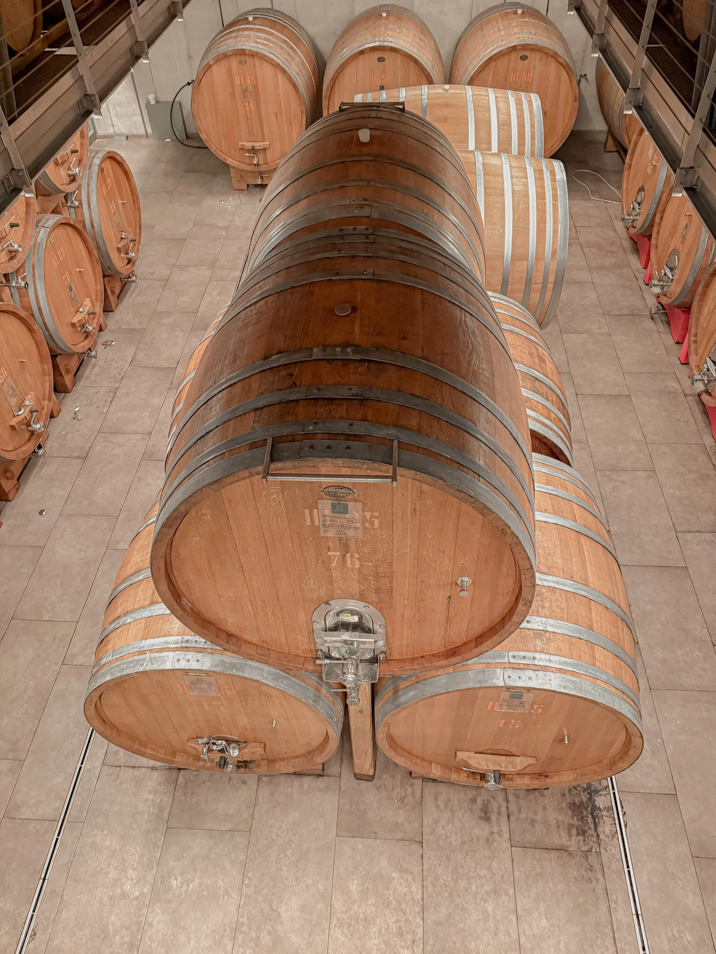 We arrived in the golden hour and watched the sun dip behind the hills from the tasting room terrace—glass in hand, hearts full. The tasting was slow, generous, and unhurried, with plenty of time to explore their cellars and take in the beauty of this historic estate, which includes a cooking school and restaurant.