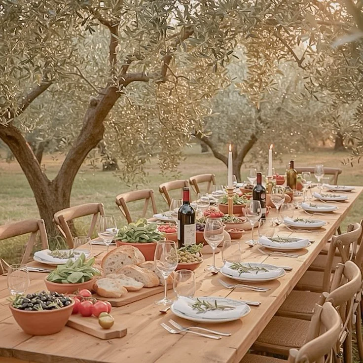 The afternoon is yours: lounge poolside, nap in the quiet, or sink into solitude with a journal. As the golden light returns, we gather with my friends Luisa and her family at their Olive Oil farm closeby to take apperitivo and a light dinner on thier working farm. -